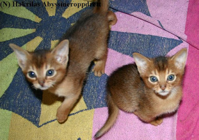 Kattungene er kjempeaktive, de lekesloss, jager hverandre, jakter på hverandre, jakter på mamma Dixie sin hale og løper rundt i kattungebingen. Det er virkelig fart på dem nå ja 🙂