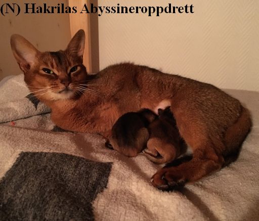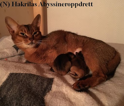 I dag har Dixie lagt pal sammen med kattungene. Hun har prøvd seg på å spise litt mat, men så fort det piper fra en av kattungene går hun tilbake tvert, men hun har ikke vært på kattetoalettet. Det har hun ikke tid til 🙂
