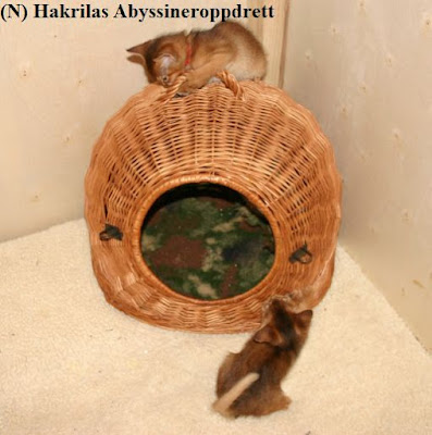 Kattungene er kjempeaktive, de lekesloss, jager hverandre, jakter på hverandre, jakter på mamma Dixie sin hale og løper rundt i kattungebingen. Det er virkelig fart på dem nå ja 🙂