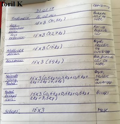 To ganger i uka trener jeg stryketrening med vekter hos fysioterapeut. Det skal jeg gjøre ut mai måned. Jeg elsker å trene stryketrening, og jeg merker at jeg har fremgang. Jeg ble satt litt tilbake, og måtte ta lettere vekter på, men på fredag 03.02.2016 økte jeg vektene på to apparater 🙂 Det er jeg kjempefornøyd med 🙂 Jeg får skikkelig overskudd etter jeg er ferdigtrent. Det har hendt at jeg har dratt på trening når jeg har vært trøtt og sliten, men det er særlig da det er kjempegodt å trene, for man blir så opplagt etter treningsøktene 🙂
