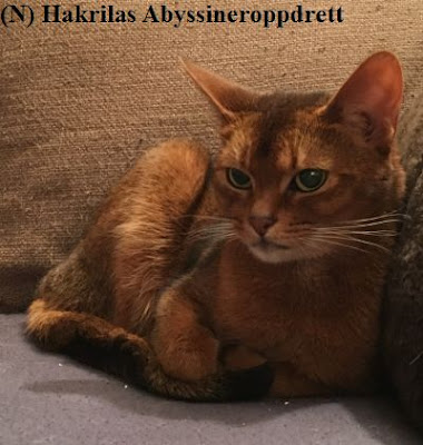 Grace stiller som ungdyr (7 – 10 måneder), og det gjør også Grace sin kullbror (Gizmo) 🙂 Min abyssinervenninne May Britt har med seg en av kattungene fra O-kullet sitt (Osiris/Oliver), og han stiller i kattungeklassen. Osiris/Oliver er kattunge, det er Elvis som er pappaen til ham.