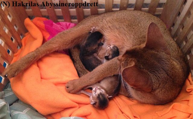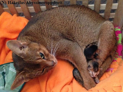De to førstefødte kattungene ved mamma Nadina sin pupp <3 <3 🙂 Råmelken kattungene får rett etter fødselen er kjempeviktig for kattungene 🙂