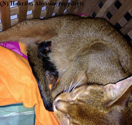 Mamma Nadina sammen sine to førstefødte kattunger <3 <3 🙂