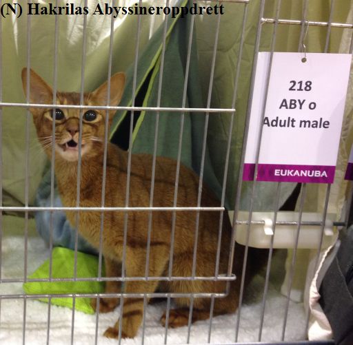 19.03 – 20.03.2016 var det duket for årets første katteutstilling i 2016. Den ble arrangert av Trønderkatten i Autronicahallen. Jeg hadde med meg abyssinerhannkatten min Elvis. Her er Elvis i utstillingsburet 🙂